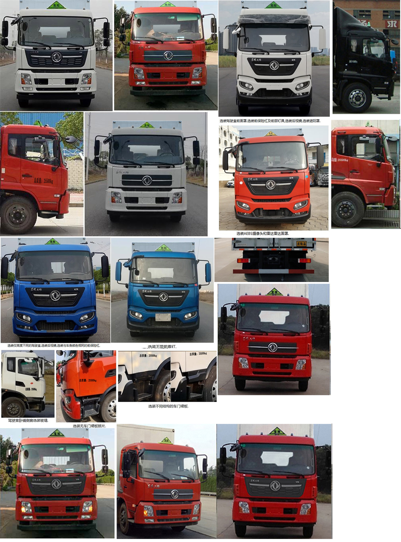 | 整車備注: | 1、該車為危險品運輸車.運輸具有獨立容器(瓶)包裝的易燃液體物品.運送危險物品類項號:3類.廂體頂部封閉不可開啟.2、側(cè),后防護材料均為Q235,側(cè)方護螺栓連接,后防護焊接,后防護截面尺寸(mm)120×60,下邊緣離地高490mm.3、僅選用排氣管前置、限速裝置(限速80km/h)、前輪盤式制動及子午線輪胎的底盤,轉(zhuǎn)向輪安裝輪胎爆胎應急防護裝置.后軸采用空氣懸架.安裝帶有衛(wèi)星定位功能的行駛記錄儀.EBS型號/廠家:EBS5/東科克諾爾商用車制動系統(tǒng)(十堰)有限公司.發(fā)動機/油耗值(L/100km)對應關系為:B6.2NS6B230/36.1,B6.2NS6B245/36.1.整車長度/軸距/后懸對應關系為(mm):10180/1995+4200/2555,11080/1995+5000/2655.隨底盤選裝駕室.該車型可選裝ETC車載裝置.廂體側(cè)面選裝開門型式及位置,選裝不帶側(cè)開門,選裝貨廂平面或瓦楞結(jié)構(gòu);廂體側(cè)面板選裝開百葉窗,選裝后部樣式.選裝尾板,尾板質(zhì)量為550kg,尾板收起狀態(tài)水平長度為290mm。選裝制冷機組,選裝后處理隔熱罩。 | ||
